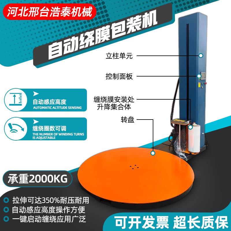全自動纏繞機托盤拉伸膜轉盤預拉式纏繞膜工業打包大型薄膜包裝機