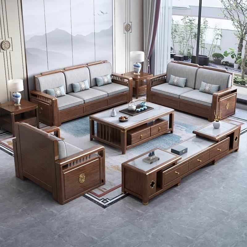新中式胡桃木實木沙發客廳組合家用大小戶型農村橡木廠家直銷北歐