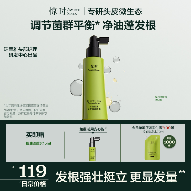 珀萊雅旗下驚時Awaken Seeds控油蓬蓬水控油頭皮精華保濕噴霧
