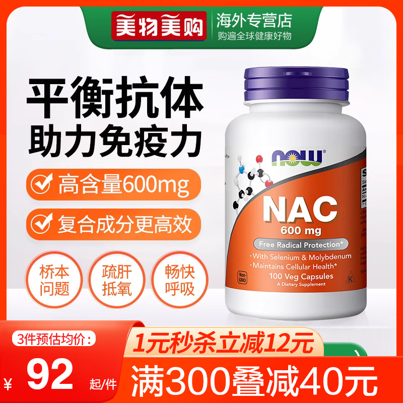 NOW諾奧美國進口NAC補充劑N-乙酰半胱氨酸膠囊甲狀健康改善橋本