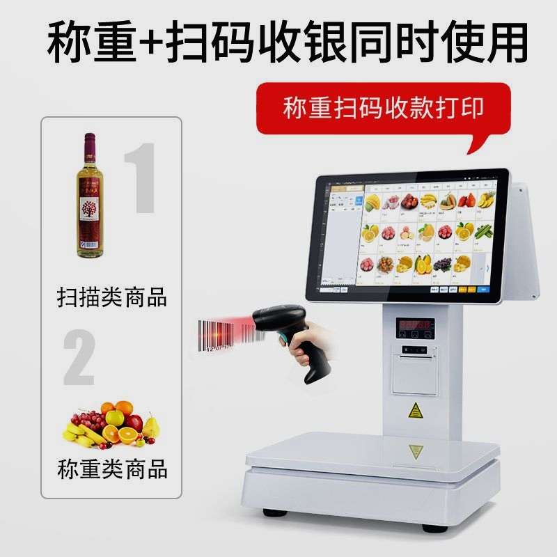 超市收銀機水果蔬菜便利店生鮮零食商超掃碼收銀系統管理一體機麻辣燙熟食雙屏收款機ai收銀稱重收銀機一體機