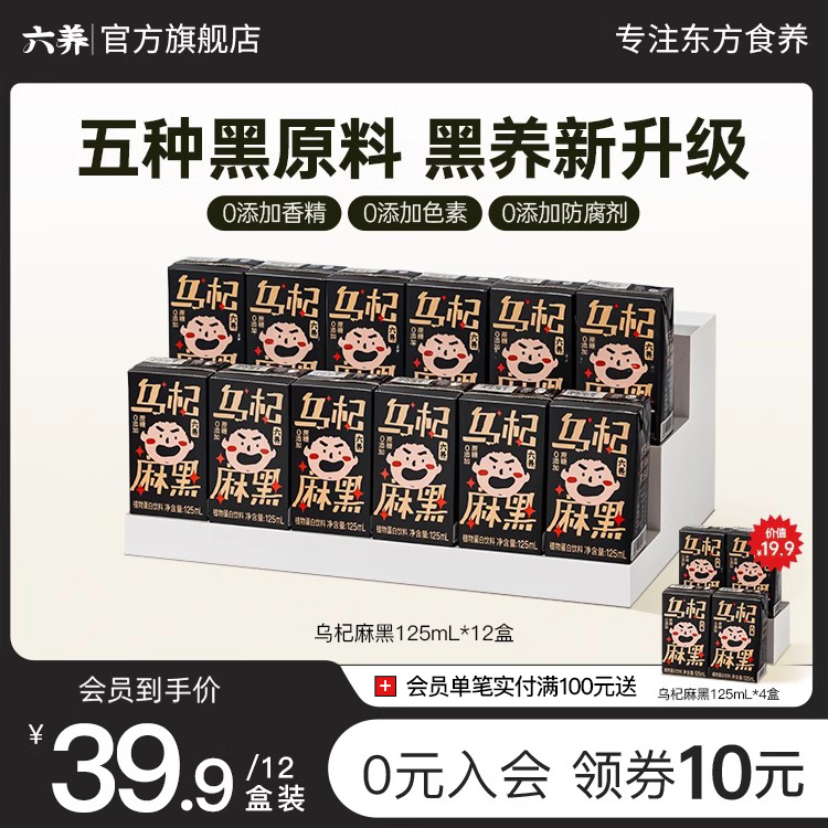 六養0添加蔗糖黑芝麻植物蛋白飲料即食代餐五黑植物奶125ml*12