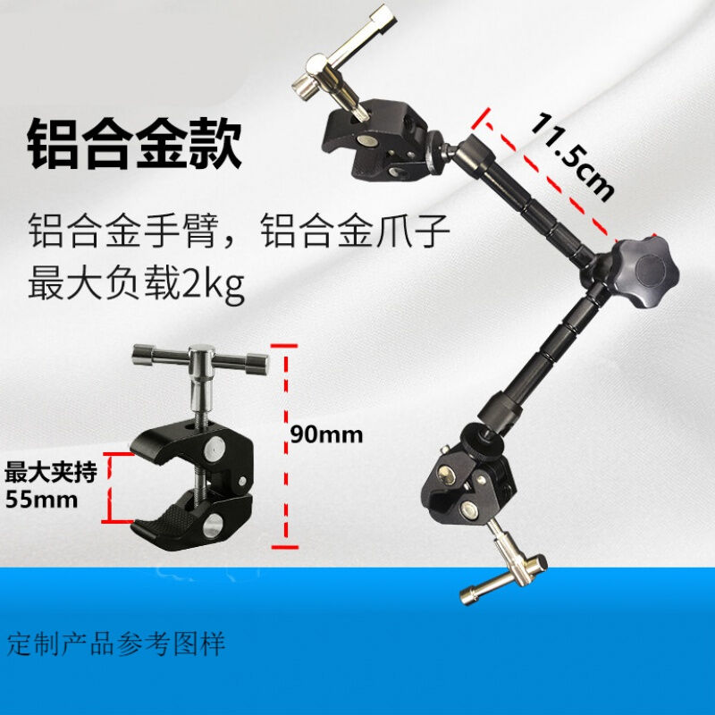 11寸機器視覺專用雙頭魔術手光源夾具水平儀相機夾打光萬向支架鋁