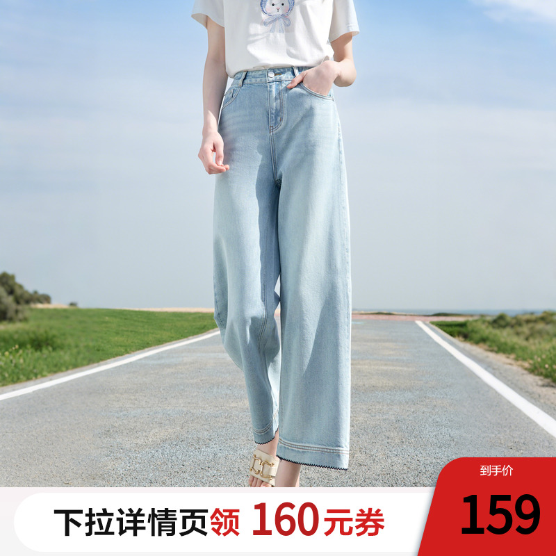 森柔牛仔|商場同款森馬牛仔褲女長褲夏季2025新款分割水洗闊腿褲