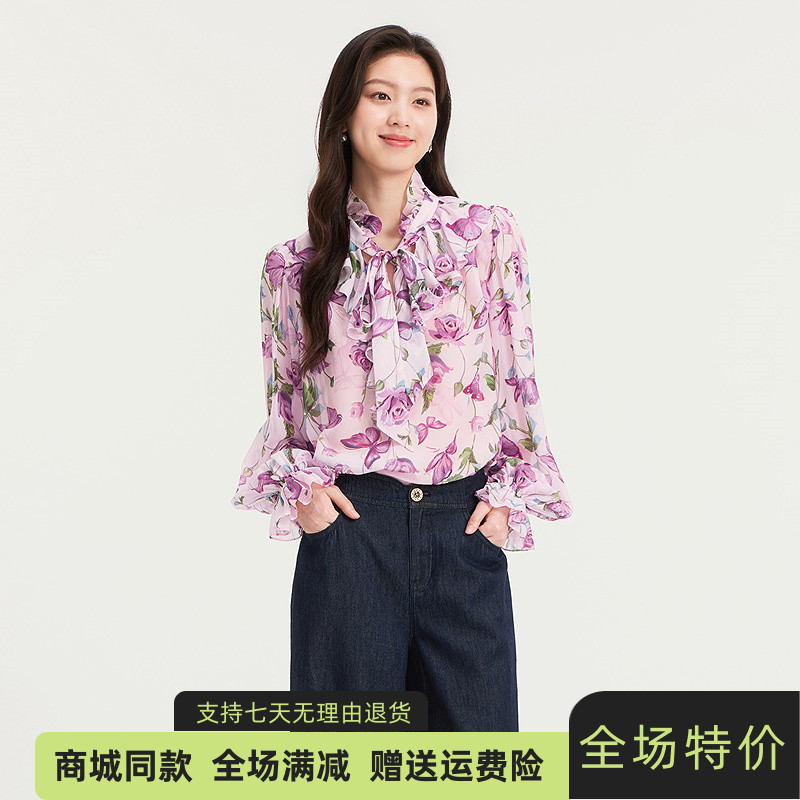 珂萊商場同款25秋新款氣質浪漫套頭雪紡襯衫女燈籠袖 KD04626U2