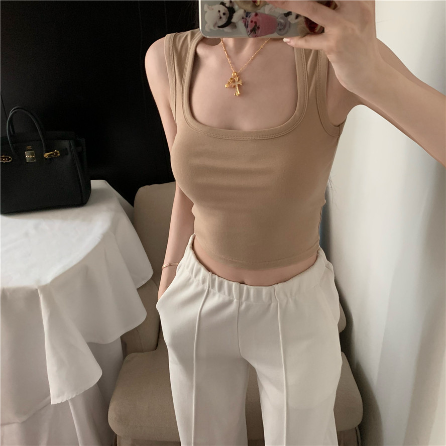 2024夏新款大奶背心基礎方領工字吊帶背心短款上衣女