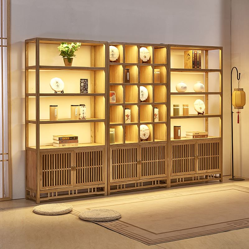 極速新博古架實木新中式茶葉展示隔斷收納柜茶室置物古董擺件架子