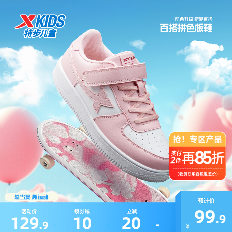 特步童鞋兒童小白鞋女童板鞋夏季新款休閑鞋運動鞋女孩鞋子女大童