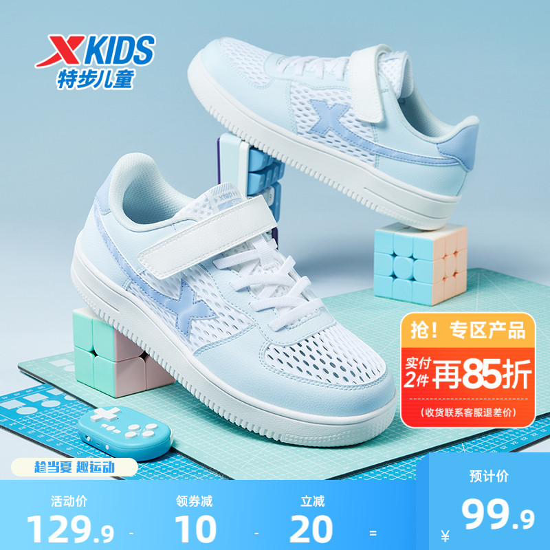 特步童鞋夏季新款兒童女童板鞋運動鞋中大童休閑鞋網面透氣小白鞋