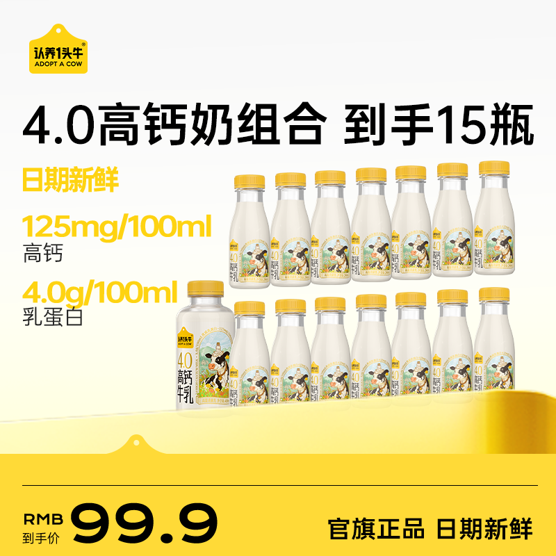認養一頭牛低溫冷藏高鈣牛奶新鮮牛奶組合裝15瓶