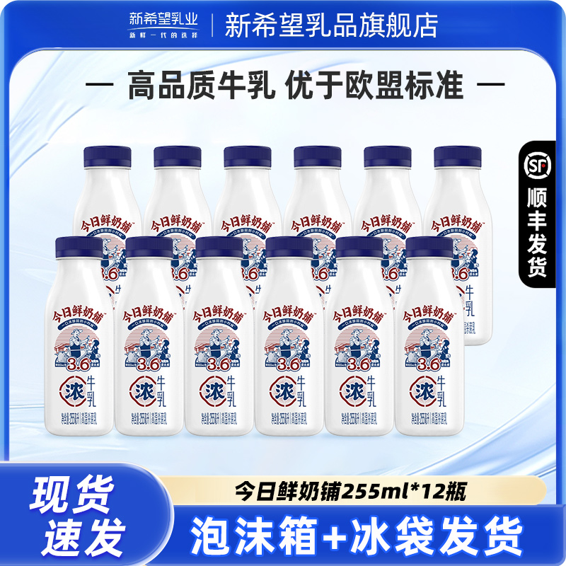 新希望今日鮮奶鋪牛乳255ml*12瓶裝低溫營養早餐奶