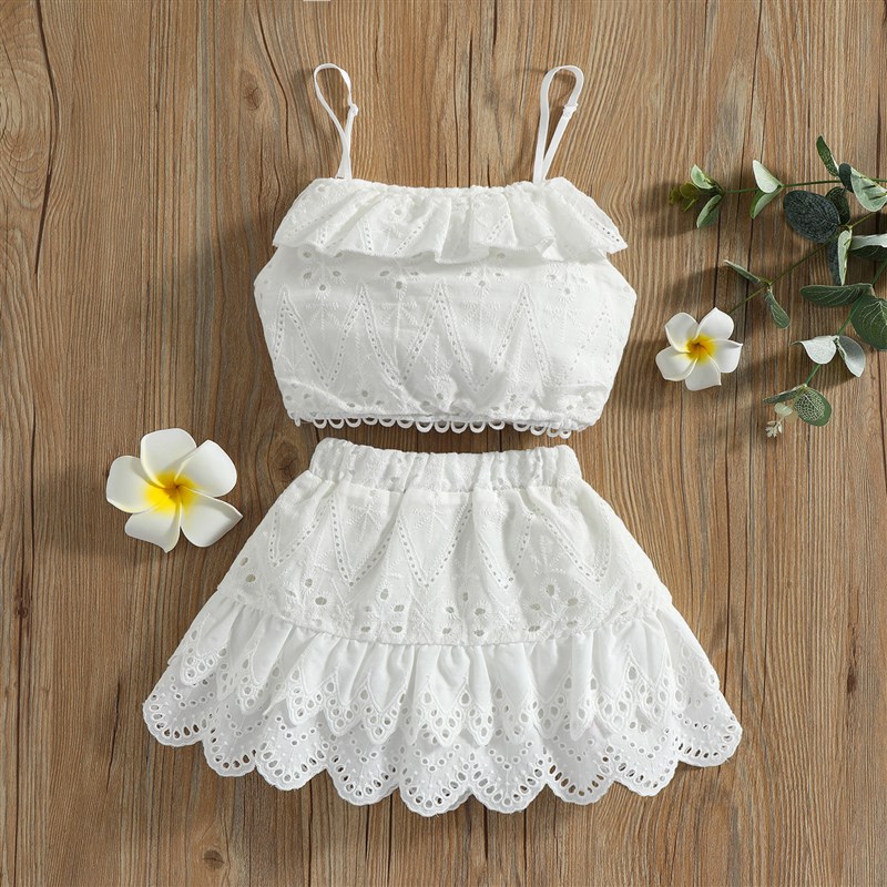 速發2pcs Kid Baby Girls Summer Clothes Set Sleeveless Lace H
