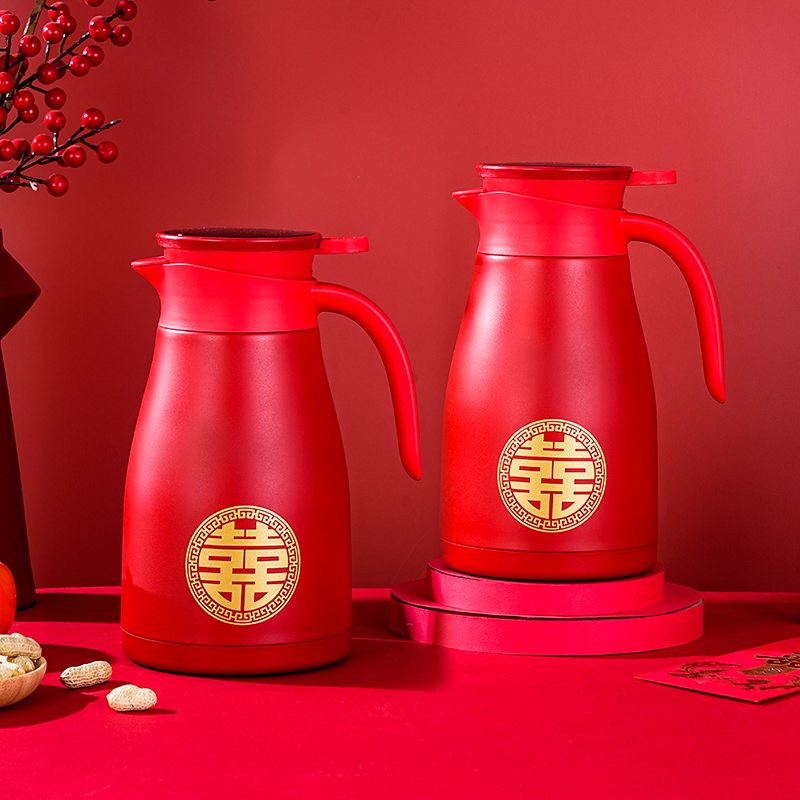 婚慶保溫瓶喜慶熱水瓶結婚用高檔暖壺紅色一對暖瓶陪嫁品嫁妝水壺