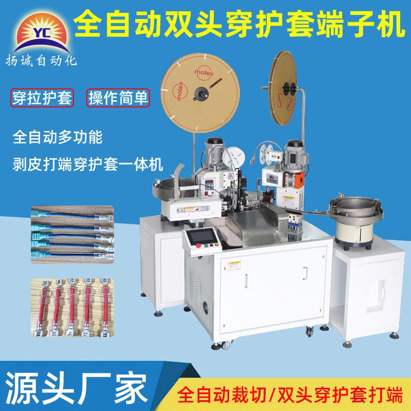 揚誠全自動雙頭穿護套打端子機自動單雙頭伺服穿拉剝皮壓接機