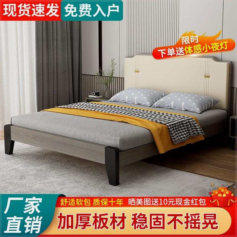 床現代簡約主臥雙人1.8米輕奢經濟型1.2米出租房用單人軟包實木床