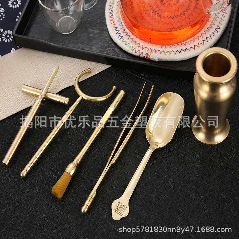速發純銅茶具六君子套裝茶夾茶筒茶叉茶刷茶針茶匙茶漏禮品配件