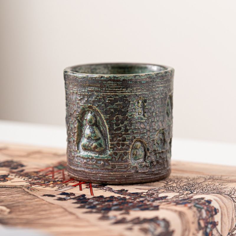新品手作茶盞主人杯敦煌印象青銅釉孟禪杯建盞高端把玩茶器茶杯