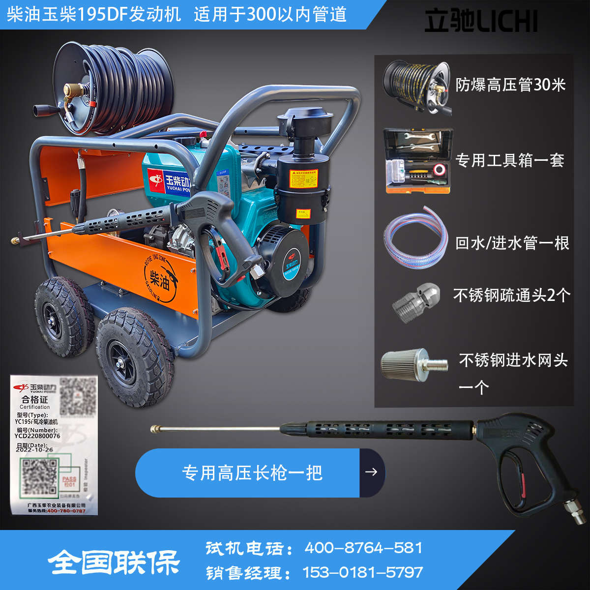立馳高壓管道疏通機大功率柴油物業小區疏通管道機管道高壓清洗機