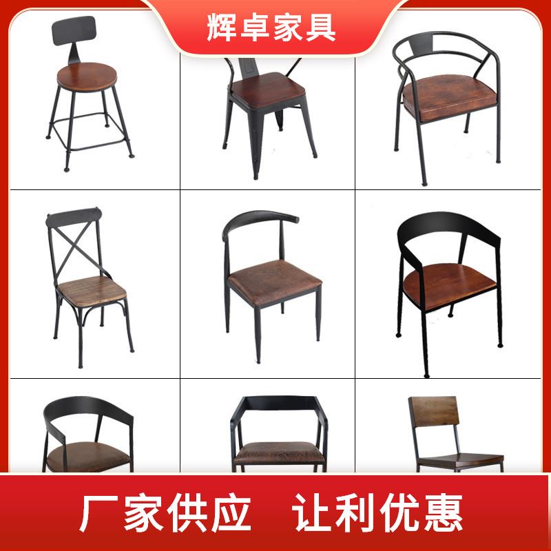 速發復古鐵藝餐桌餐椅商用工業風美式家俱靠背椅子設計師實木餐椅