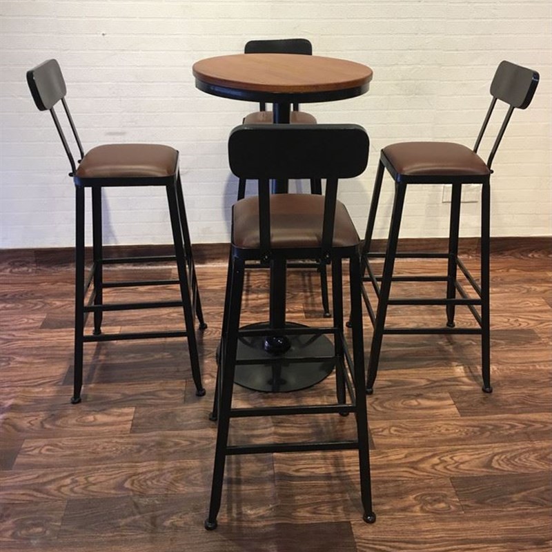 速發202鐵藝復古高腳椅吧臺凳實木桌椅組合咖啡廳奶茶店酒吧圓方