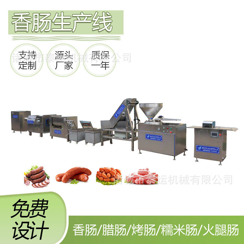 全自動香腸成套加工設備蒜蓉腸烤腸全套機器香腸制作風干設備