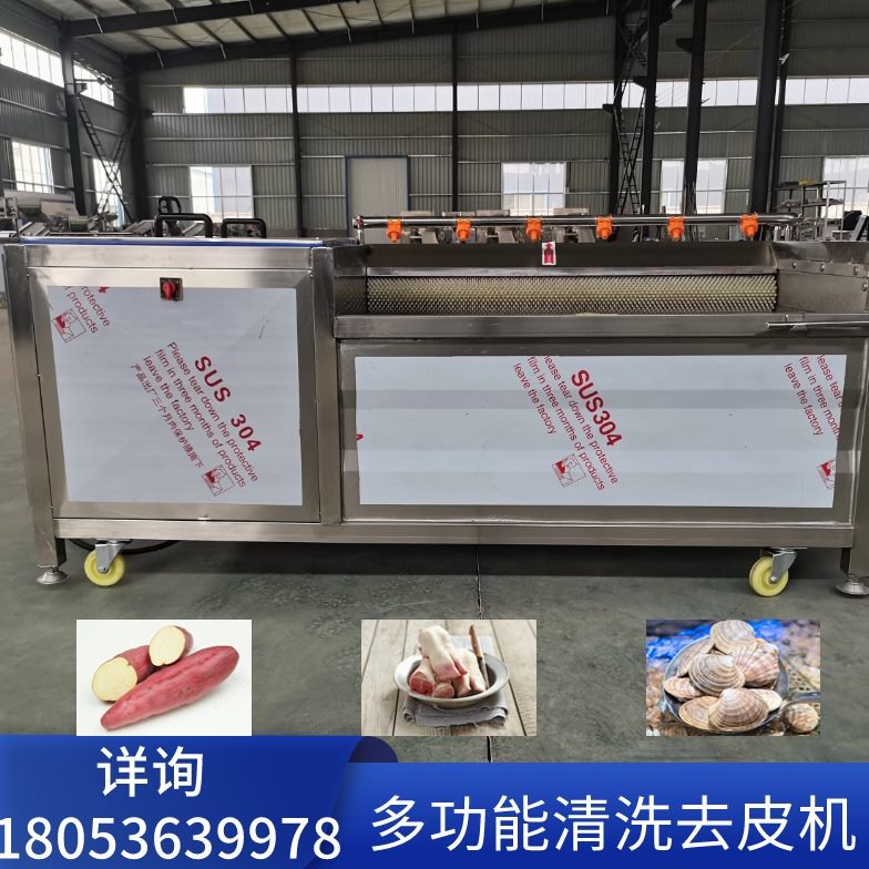 全自動土豆去皮機新款商用清洗脫皮機地瓜芋頭生蠔毛刷清洗一體機