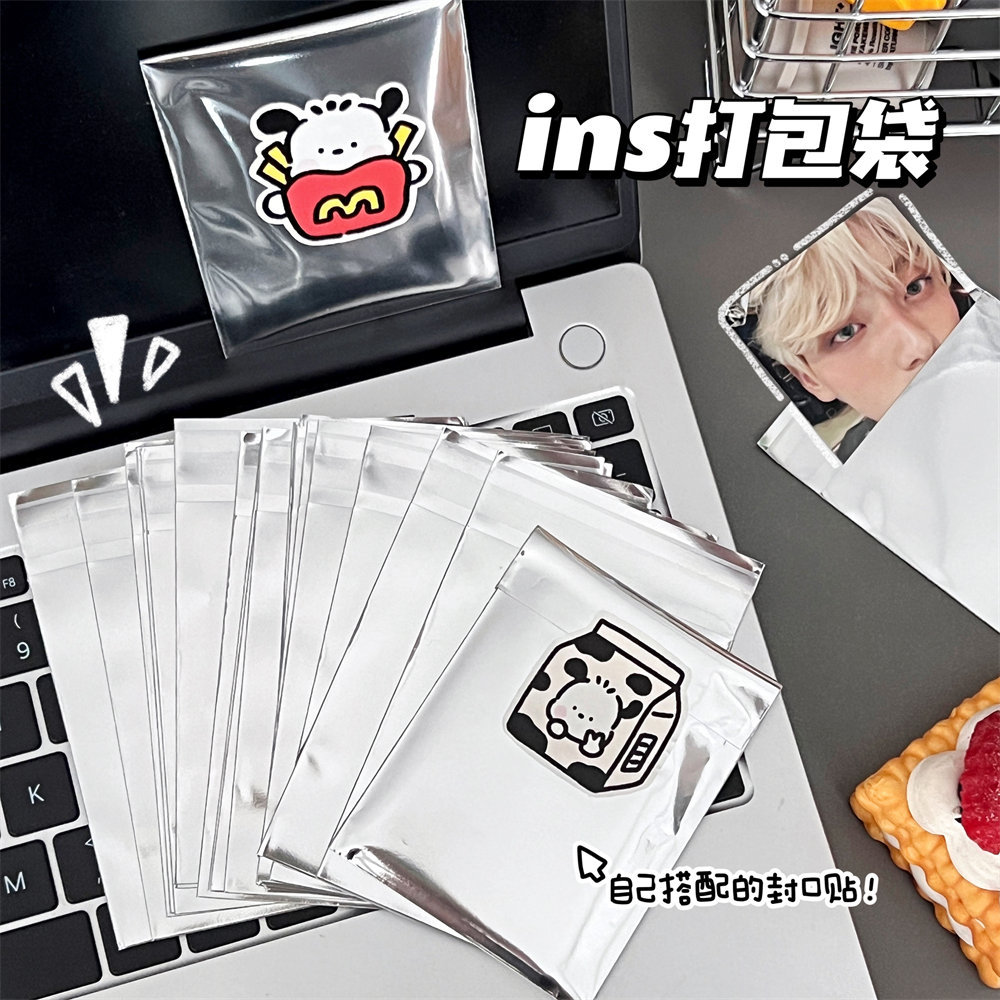 10個 出卡打包包裝袋ins風豆明星照片手賬禮品自封袋子銀色自粘袋