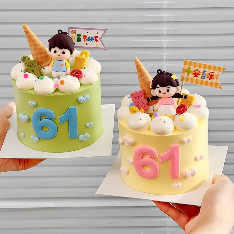 61兒童節蛋糕裝飾軟膠可愛男孩女孩擺件六一快樂小旗插件甜筒擺件