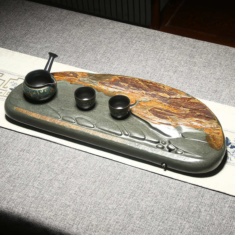 家用茶盤老坑金皮整塊歙硯原石硯臺茶盤手工歙硯功夫茶臺子茶具套