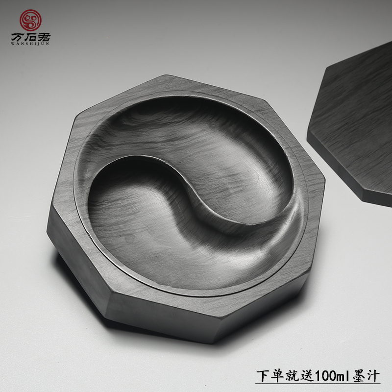 極速l國家非遺5英寸帶蓋池素經精典太極八卦硯臺帶蓋 歙硯品硯臺
