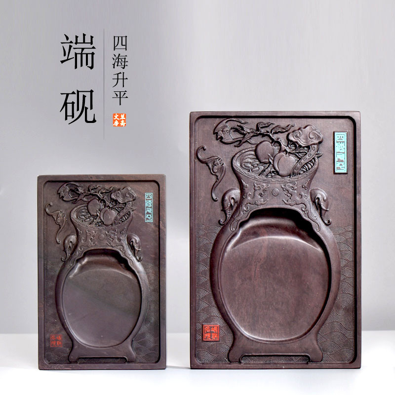硯臺松花石硯臺龍紋文房四寶天然老坑御硯堂可儲藏墨汁7寸實用硯