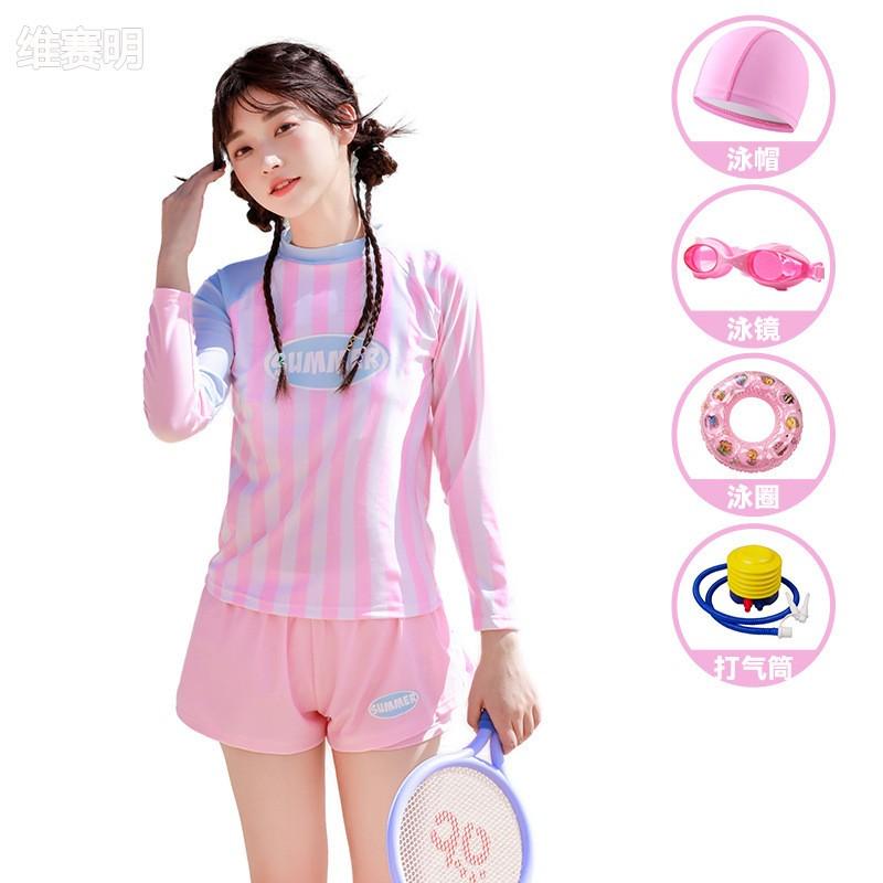 兒童泳衣女孩分體長袖防曬游泳衣夏季2024新款學生中大童女童套裝