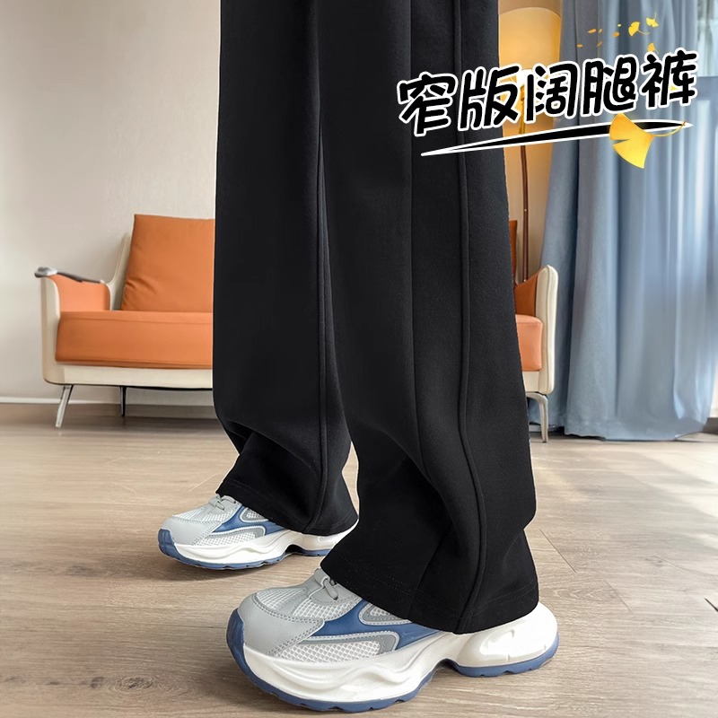 黑色運動褲女秋冬新款加絨加厚垂感香蕉褲運動衛褲高腰窄版闊腿褲