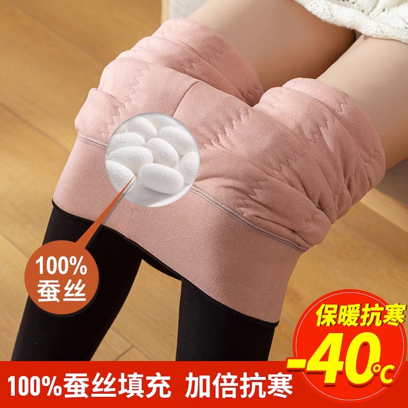 蠶絲棉褲女冬季外穿加絨加厚打底褲高腰特厚超厚秋褲東北保暖褲
