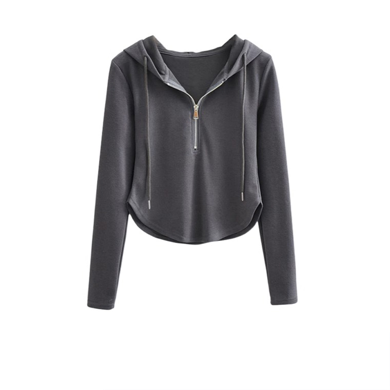 不規則連帽長袖t恤女秋季新款休閑衛衣打底衫工裝褲搭配的上衣