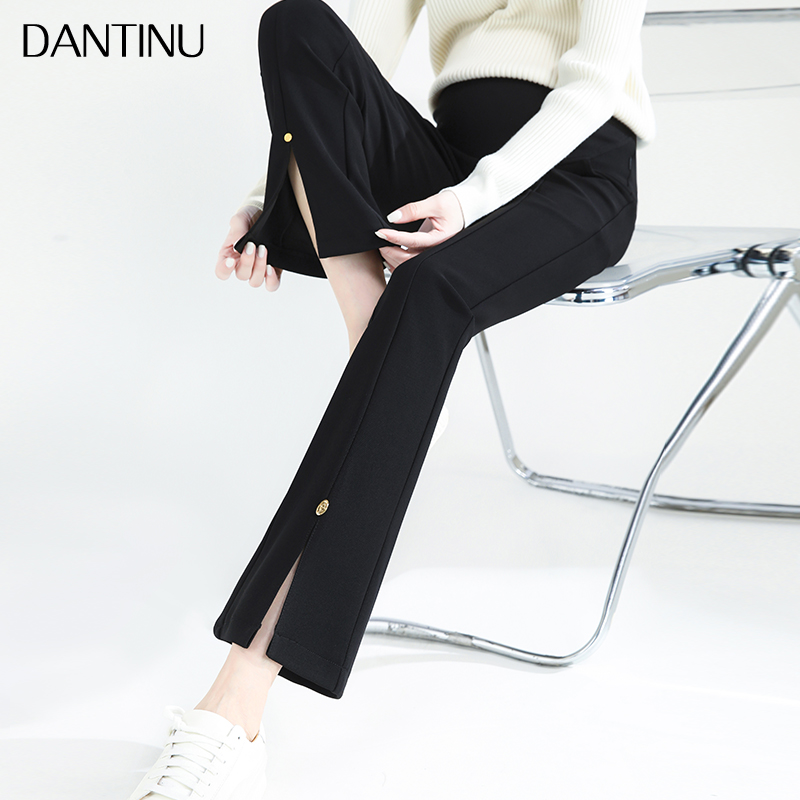 孕婦喇叭褲秋季新款小個子開叉孕期時尚托腹外穿顯瘦黑色微喇叭褲