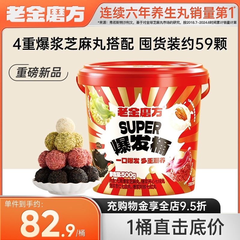 老金磨坊爆漿黑芝麻丸養生丸爆發桶禮盒送禮休閑下午茶辦公室零食