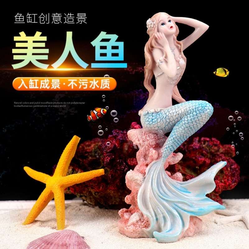 魚缸造景裝飾美人魚假山擺件水草樹脂客廳水族仿真套餐珊瑚組合