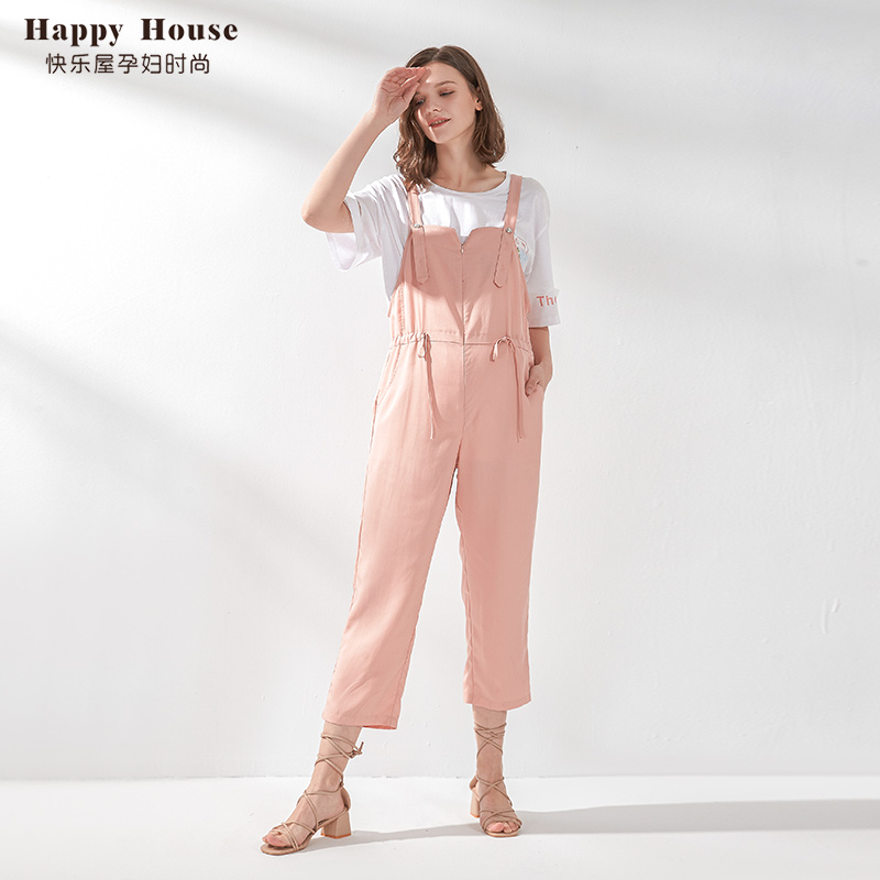 快樂屋孕婦背帶褲七分褲時尚薄款2025孕婦裝春夏款孕婦褲子小個子