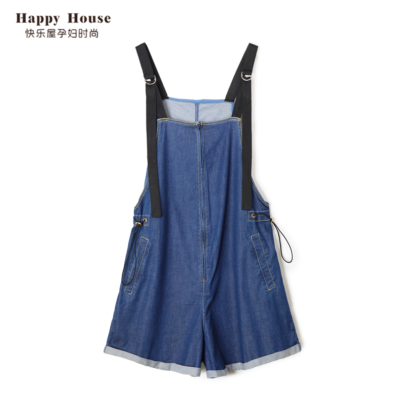 快樂屋寬松闊腿牛仔背帶短褲2025新款時尚顯瘦潮媽孕婦背帶褲薄款