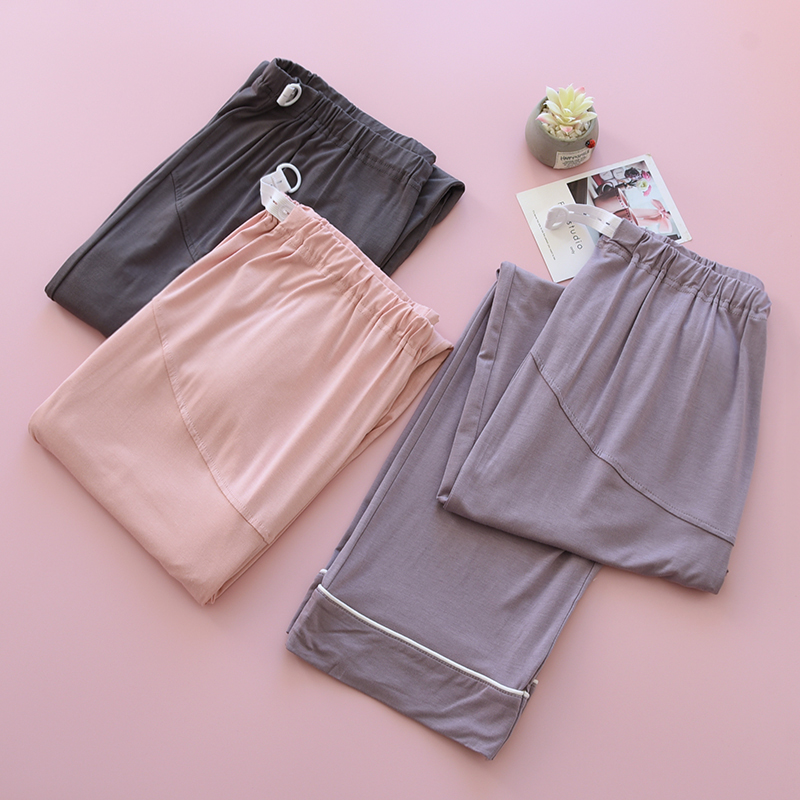 孕婦睡褲莫代爾可調節懷孕期春秋夏季托腹褲高腰薄大碼直筒家居褲