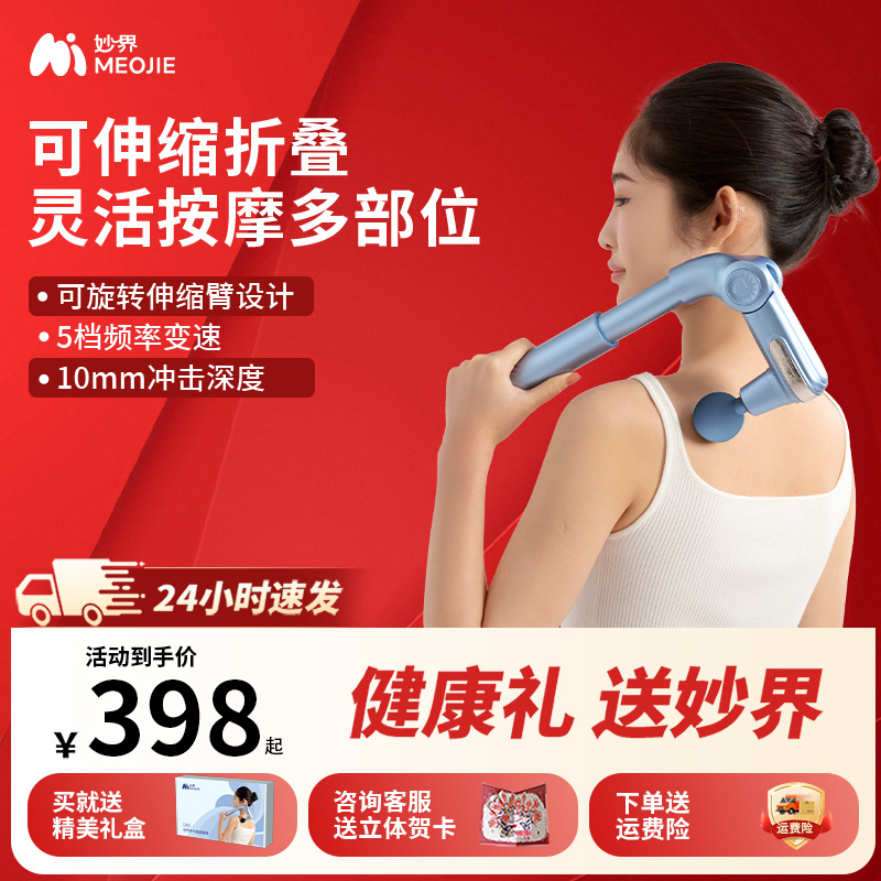 妙界JX03筋膜槍不求人捶腰部背部可折疊健身按摩器全身放松按摩錘