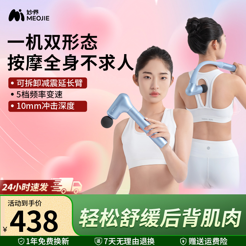 妙界JX02筋膜槍多功能可拆卸加長按摩槍健身肌肉放松不求人按摩器