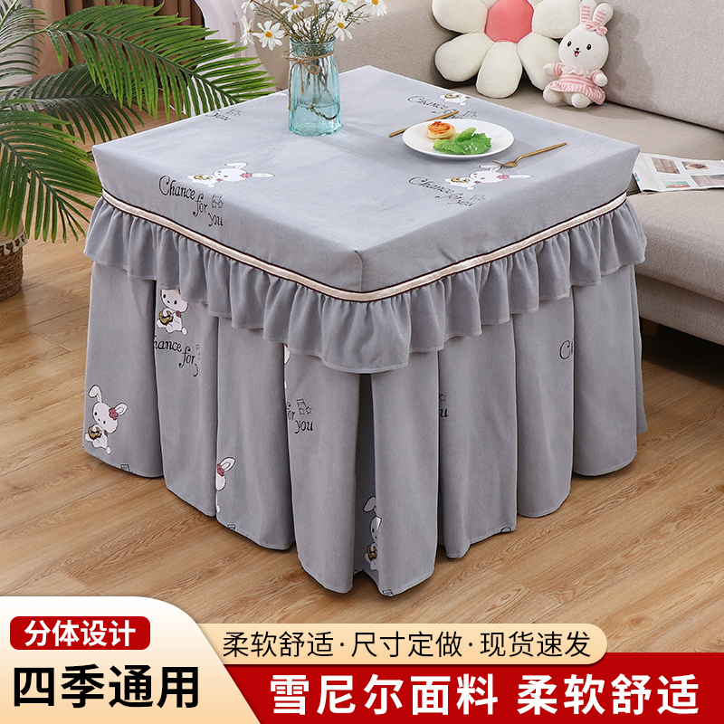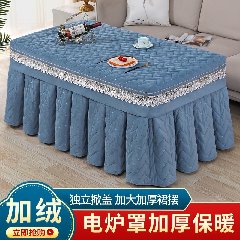 雙面絨烤火桌罩套冬季加厚電爐罩烤火罩長方形取暖桌布罩裙式新款