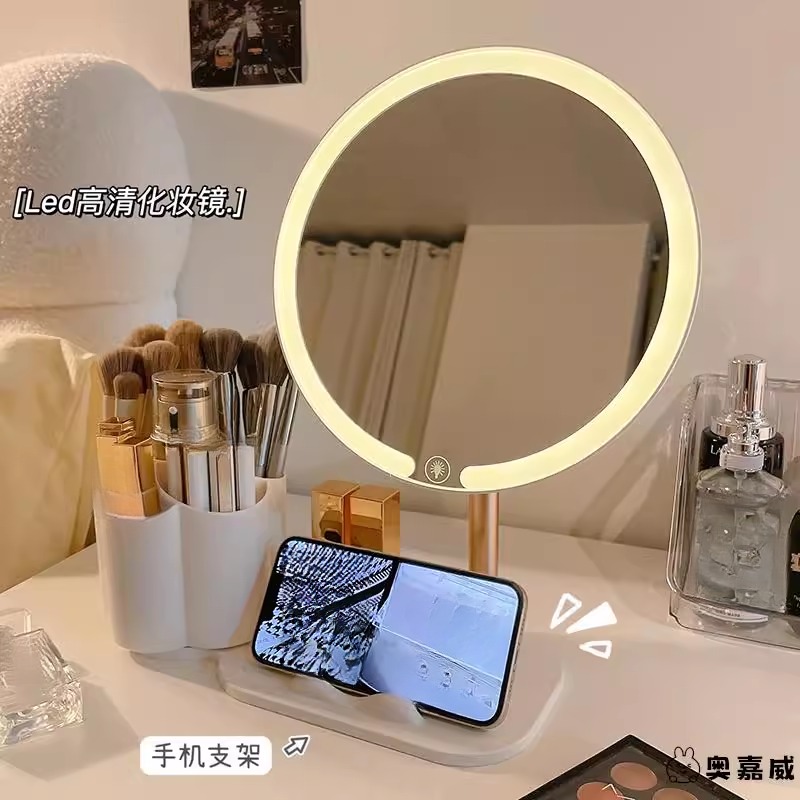 鏡子化妝鏡帶燈桌面臺式鏡子可手持梳妝臺便攜化妝鏡led2024新款