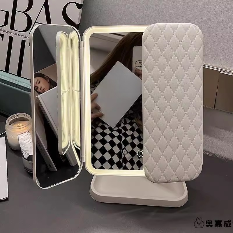 led化妝鏡開學宿舍帶燈臺式桌面智能可旋轉補光三面折疊梳妝鏡子