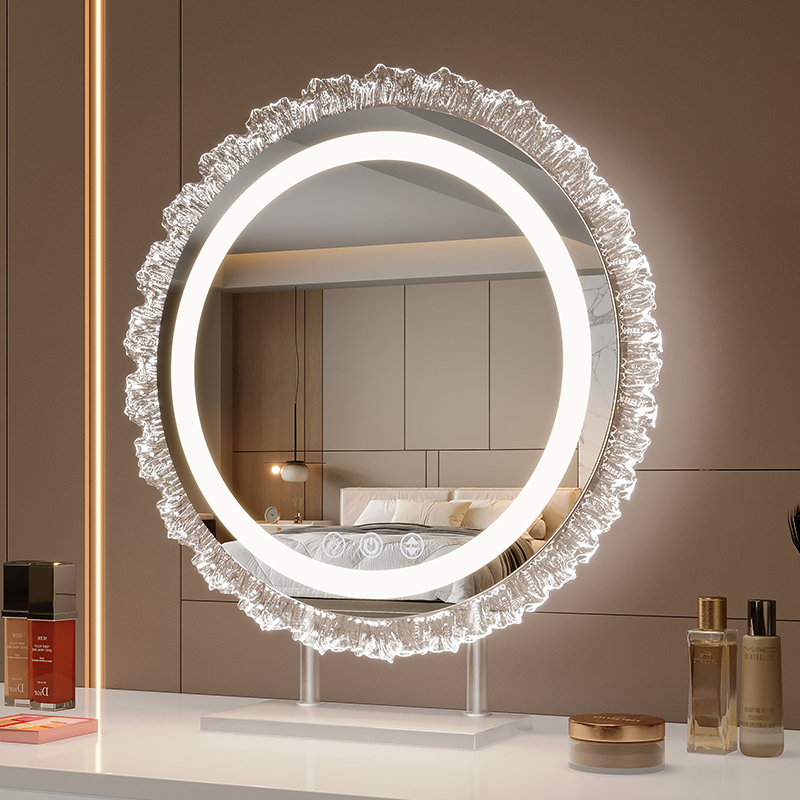 潤戀品牌高清led化妝鏡子帶燈梳妝鏡臺式桌面智能家用主臥室大號