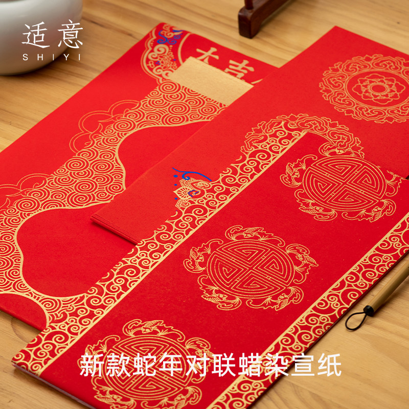 適意2025年蛇年對聯宣紙新年萬年紅蠟染手寫書法專用文藝古風春聯