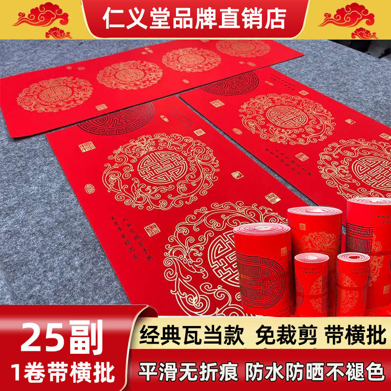 仁義堂珠江春聯25副卷裝無折痕傳統瓦當不褪色銅版紙空白手寫對聯