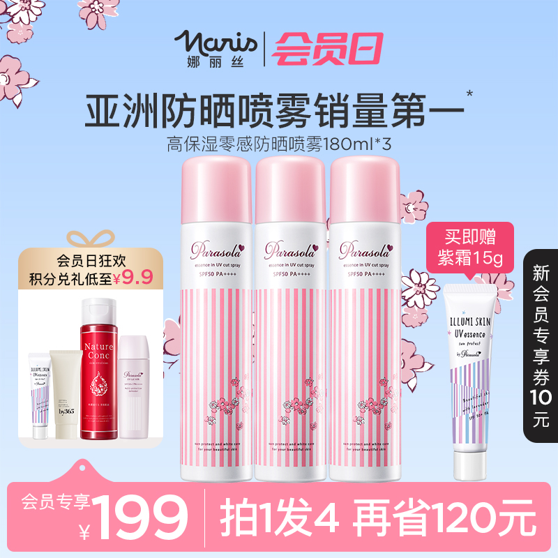 【3支】娜麗絲防曬霜噴霧女透明面部全身通用隔離補水正品180ml*3